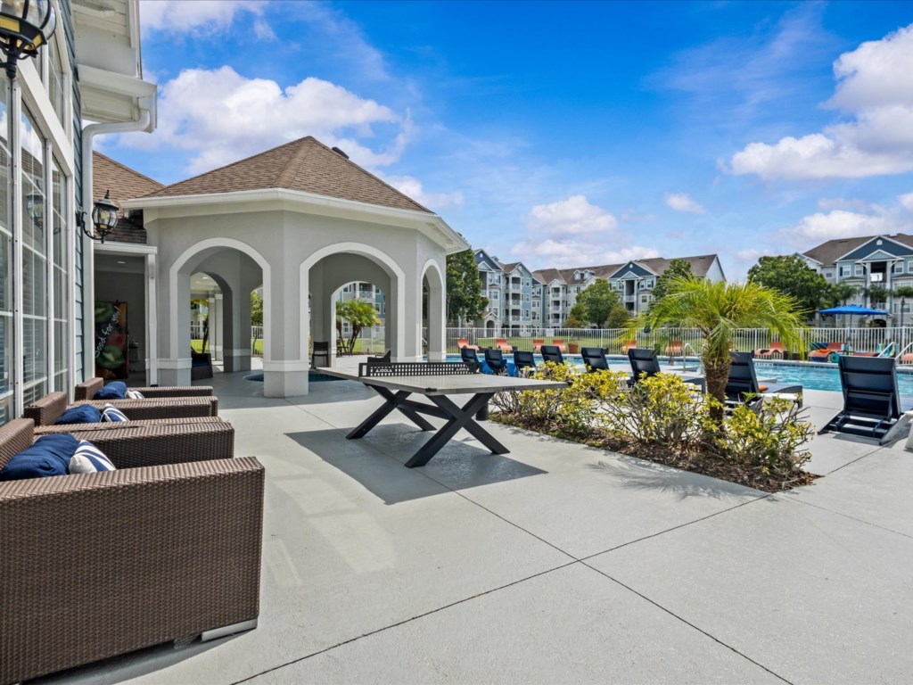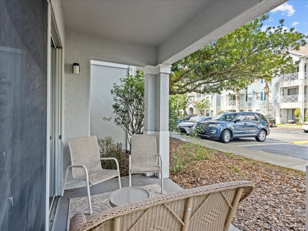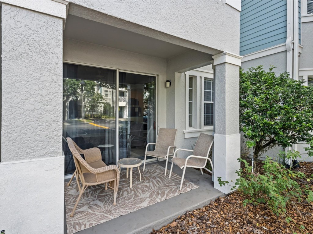 Relax on your private covered porch after a busy day at the parks, soaking up the peaceful surroundings of this pristine community.