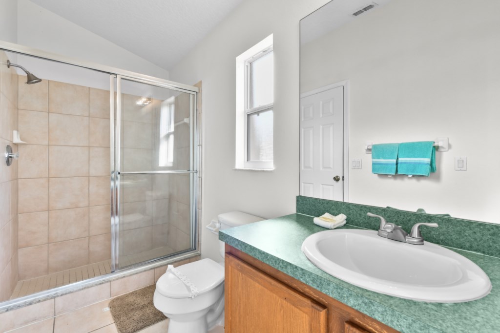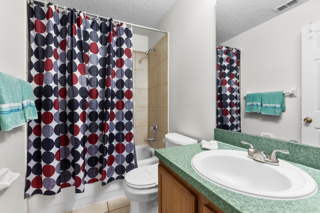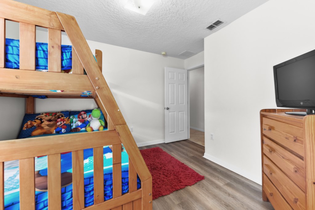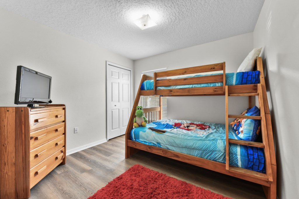 - Bunk Bed (1 Full Bed & 1 Twin Bed) with Flat Screen TV, Hallway Bathroom with 1 Sink and Shower & Tub Combination. This bathroom is shared with Bedroom 3.