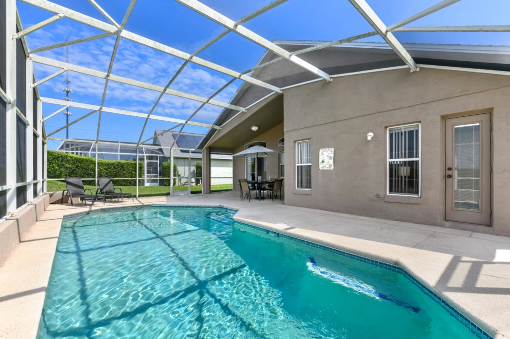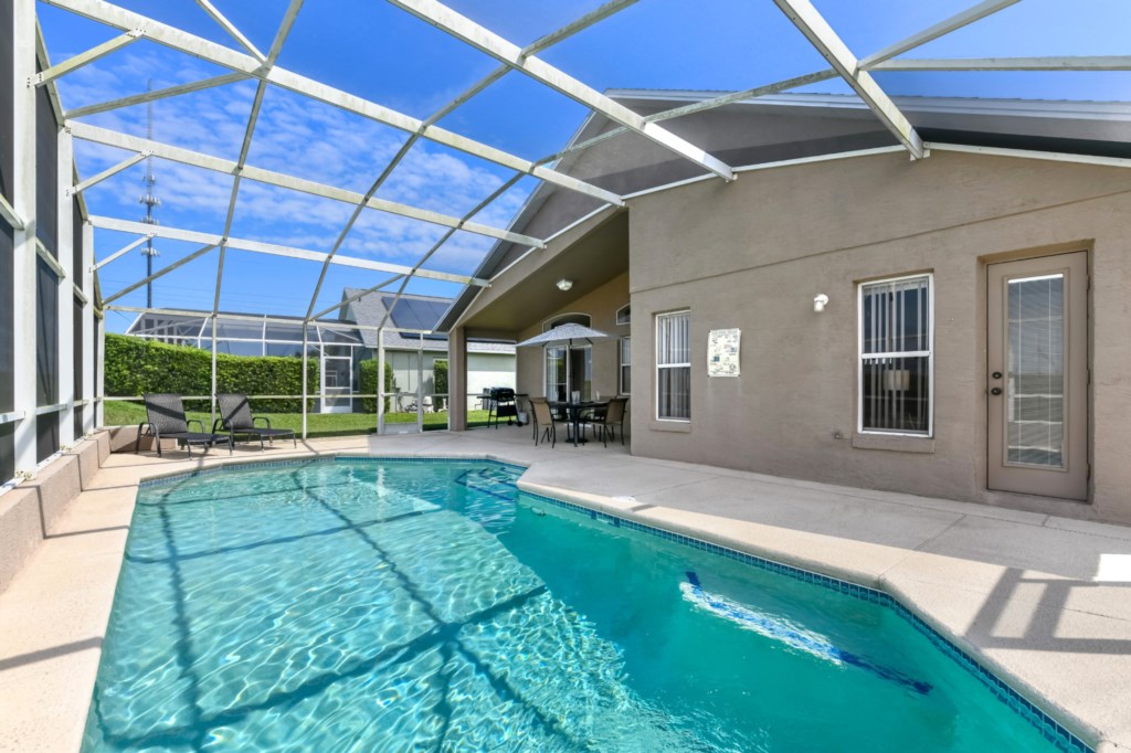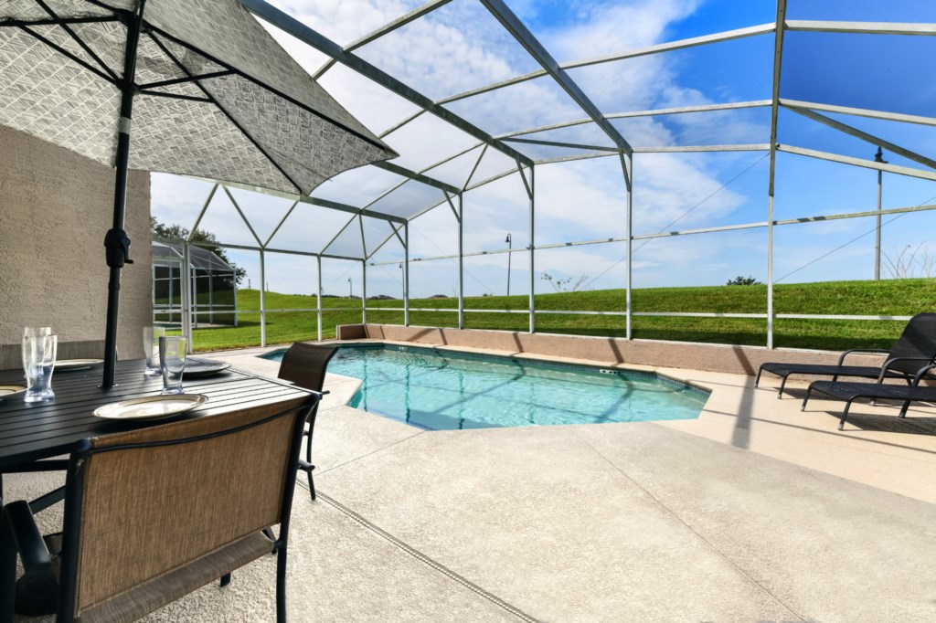 - Private Screened Southwest Facing Swimming Pool with Patio, Outdoor Furniture with Seating for 6 plus 2 Chaise Lounges