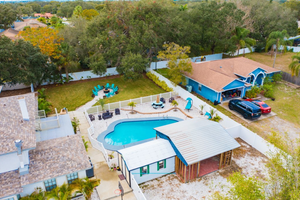 The back yard oasis will have you feeling like you are constantly on vacation. Located in the expanded golf card district of Old Palm Harbor. New vinyl fencing, new roof (2021), all bathrooms updated, updated flooring, updated kitchen with commercial hood. FYI, we treat the premises for mosquitos, using Organic Mosquito Control: No repellent needed!