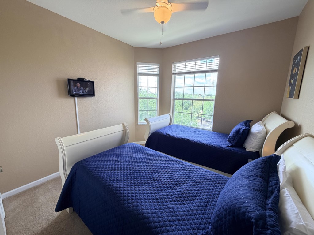 • Bedroom 2: Two Twin Beds / Shared Bathroom, 24" TV with cable