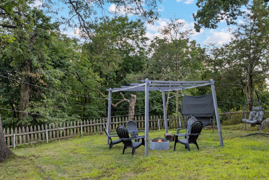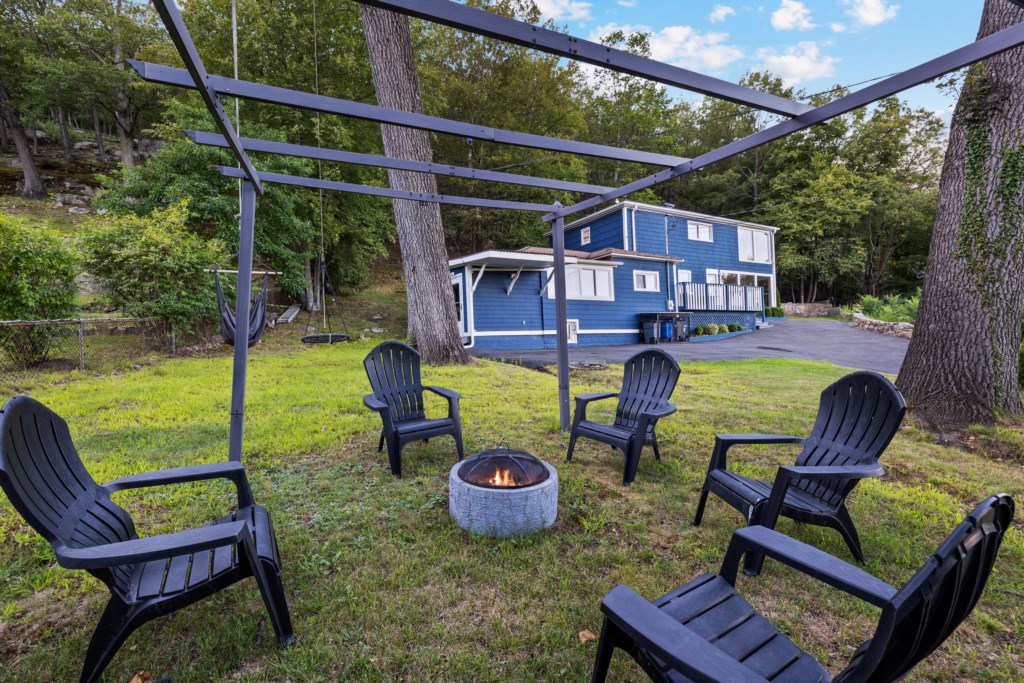 - Front fire pit surrounded by comfy seating for s’mores and stories