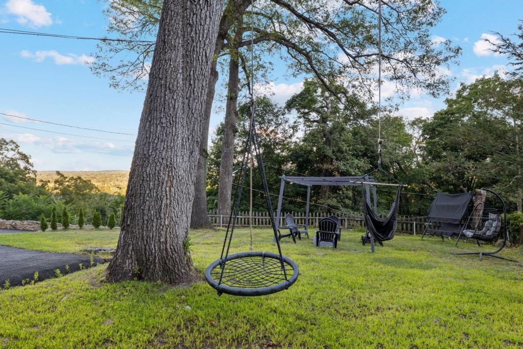 - Two adult-sized swings, including a high-hanging rope swing that gives a thrilling ride