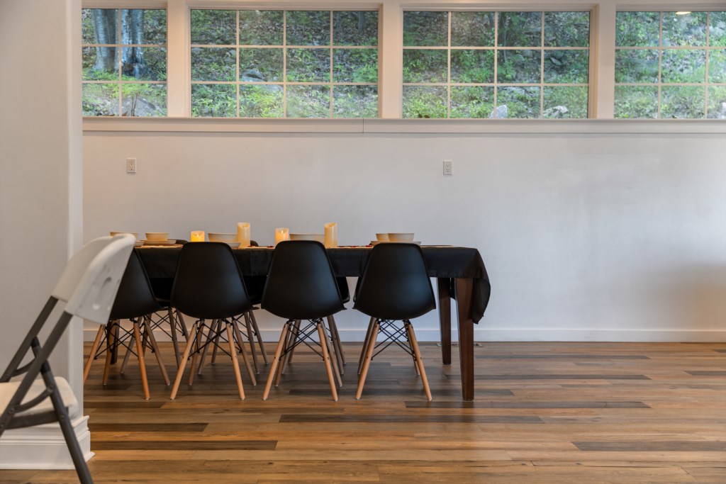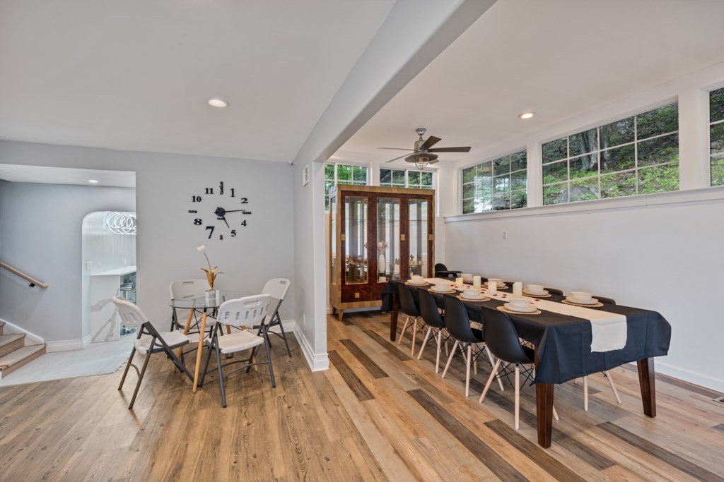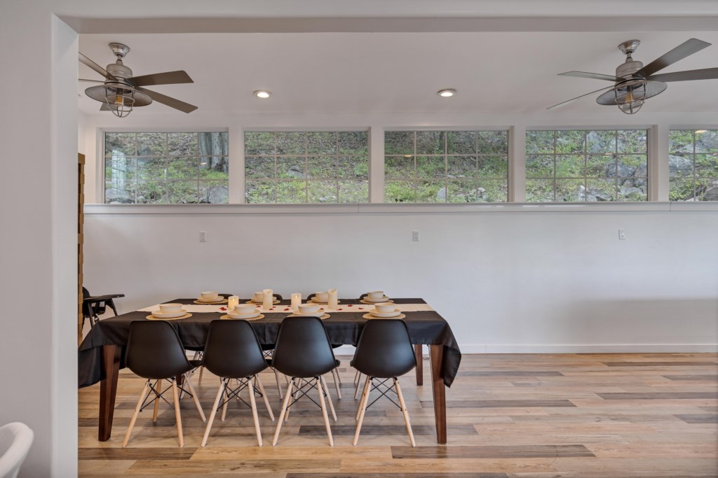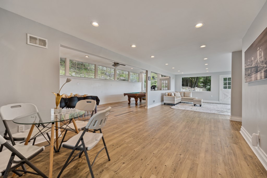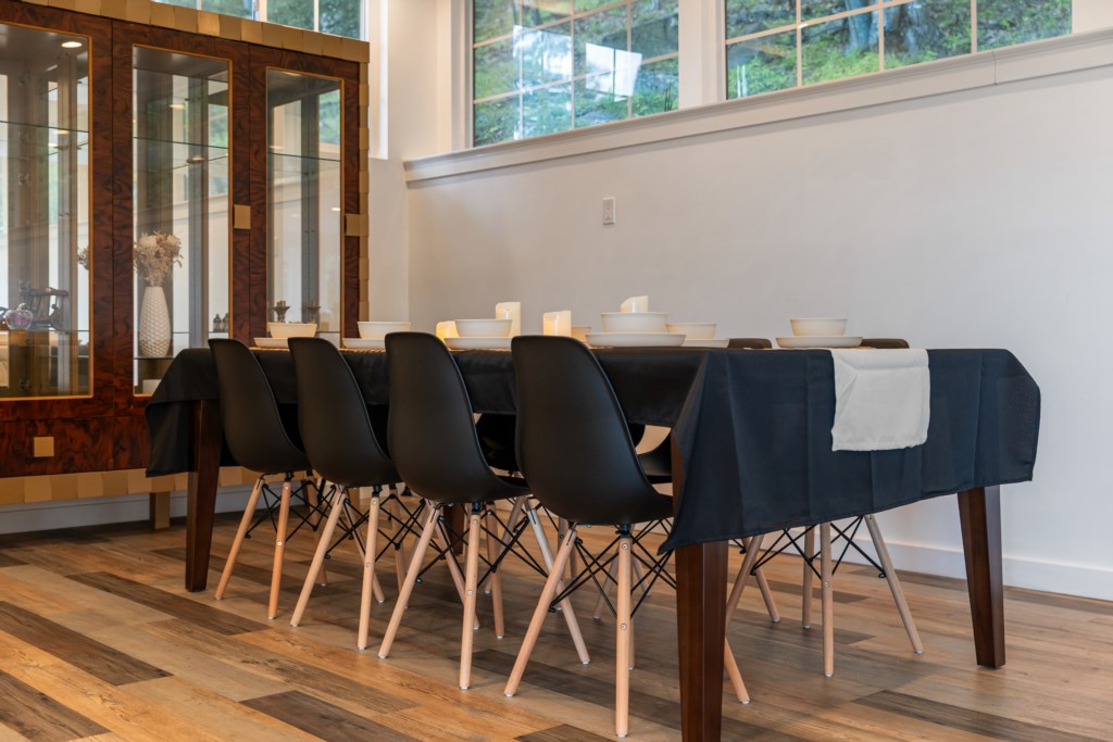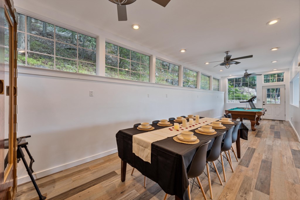 Dining Room – Seats 8 comfortably at a beautiful wood table. Located next to the kitchen and pool table lounge.