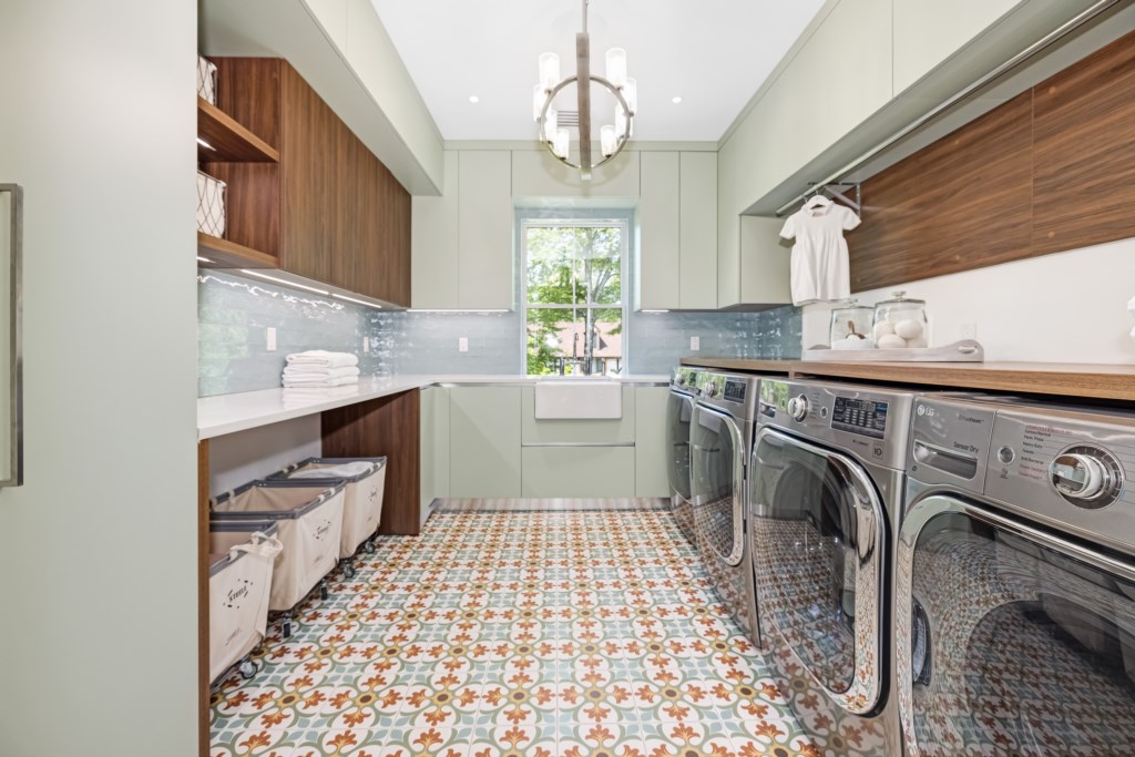 Laundry room with dual washer/dryer sets