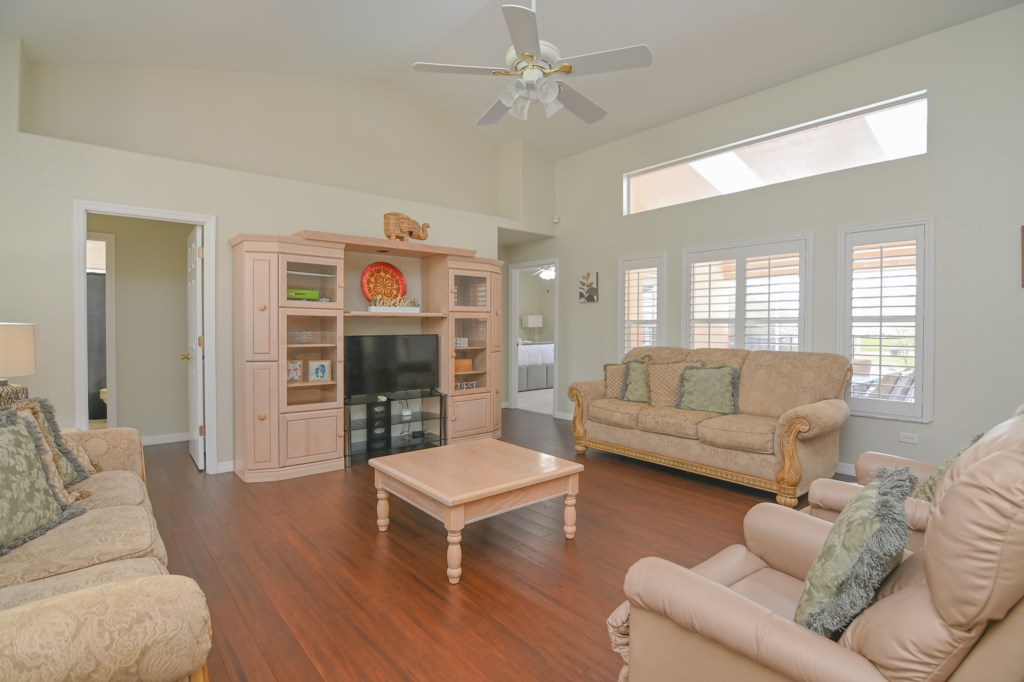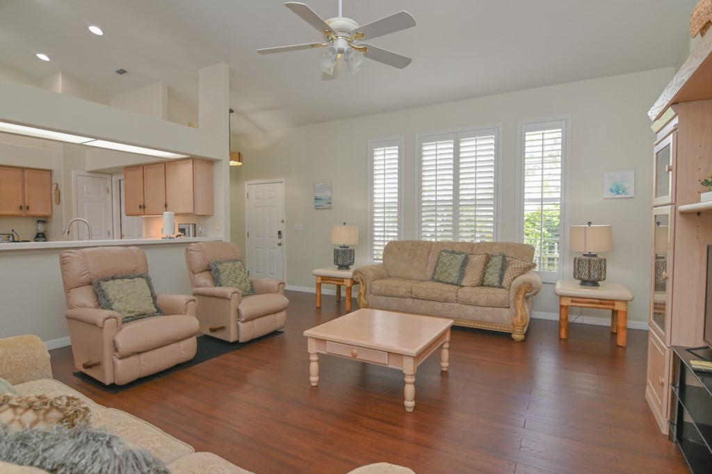 - Living Room Area with 2 Sofas, 2 Chairs and 40” Flat-Screen TV