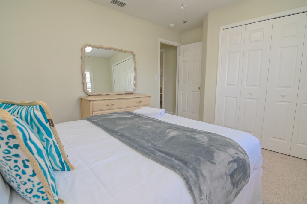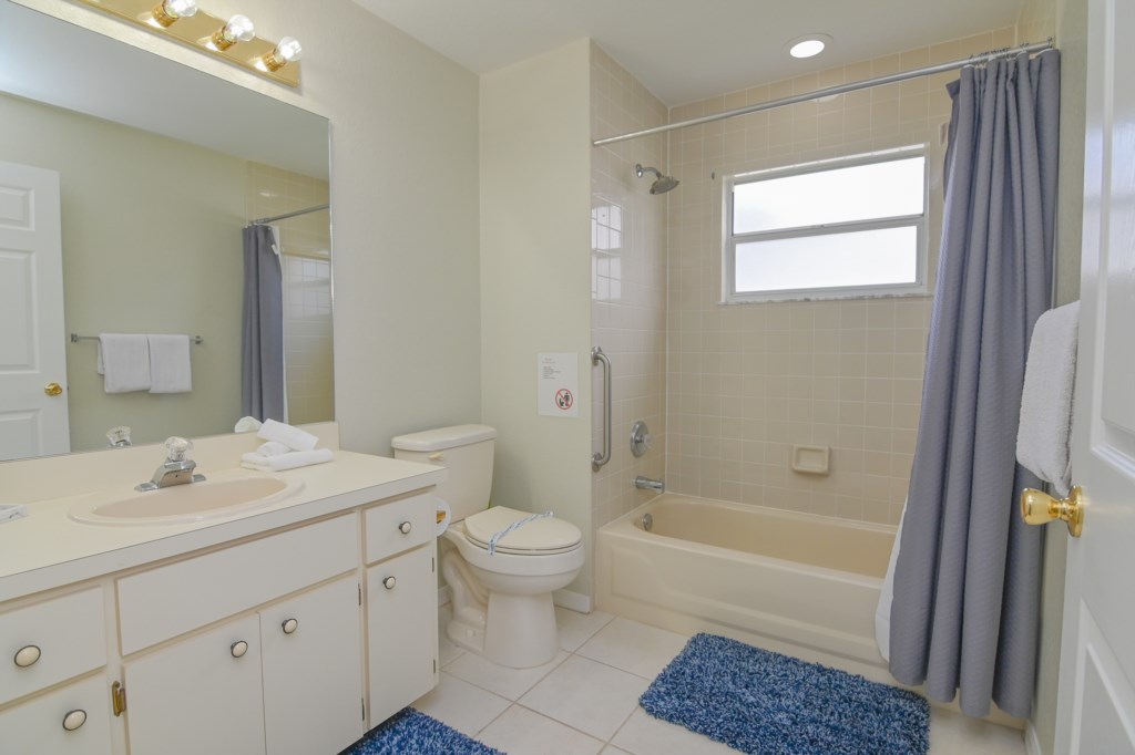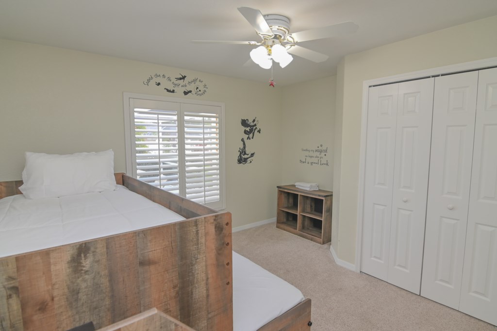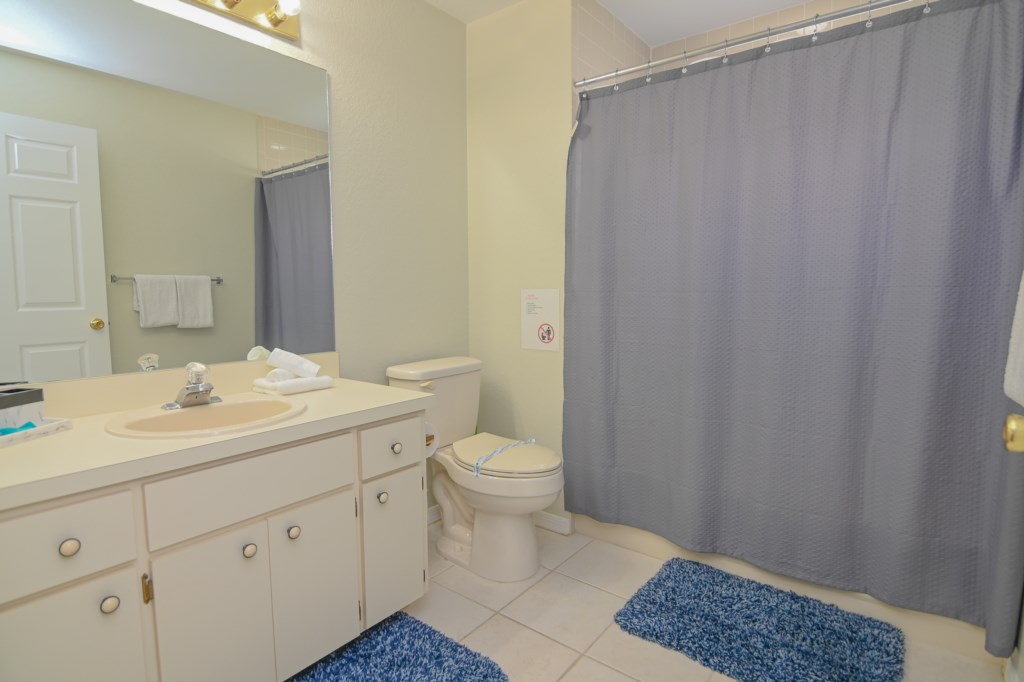 - 1 Trundle Bed with 2 Twin Mattresses, Ceiling Fan, Hallway Bathroom (BATH 1) with Single Sink Vanity and Shower & Tub Combination. This bathroom is shared with Bedroom 3.